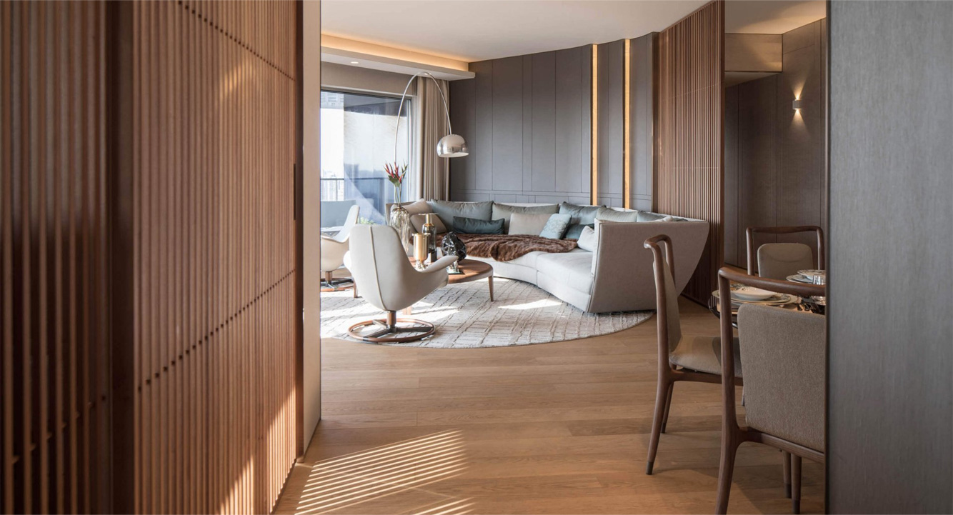 гармонично объединяя жилые пространства - от гостиной до спальной зоны.