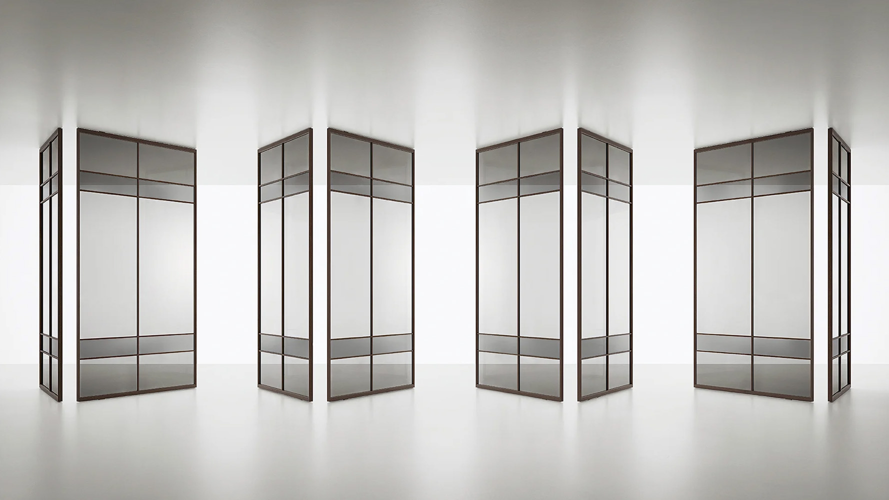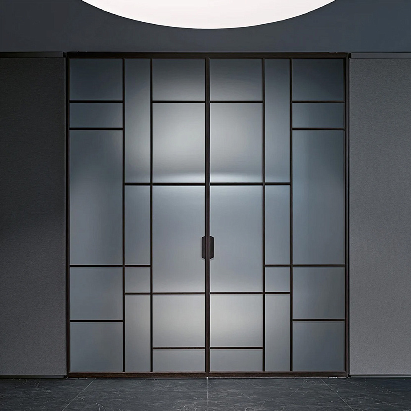 Система отличается высокой композиционной гибкостью и доступна в нескольких графических вариантах панели — Air Grid, Air Regular, Air Plus и Air Pure. Эти конфигурации позволяют адаптировать дверь к различным архитектурным сценариям, сохраняя прозрачность пространства и естественное распределение света.