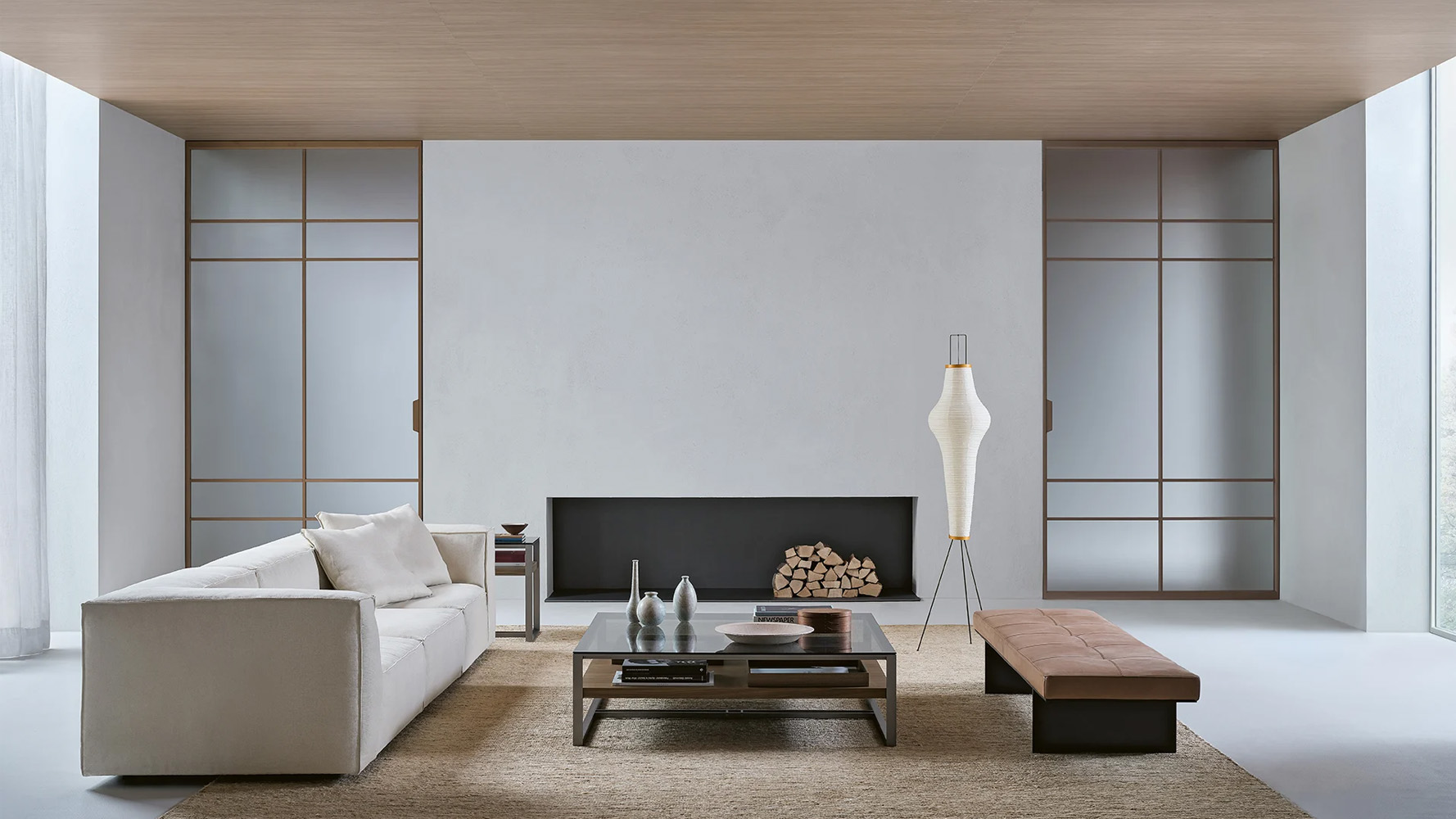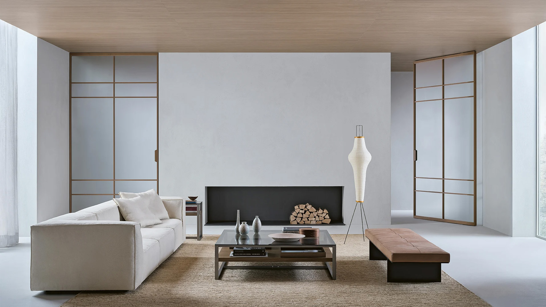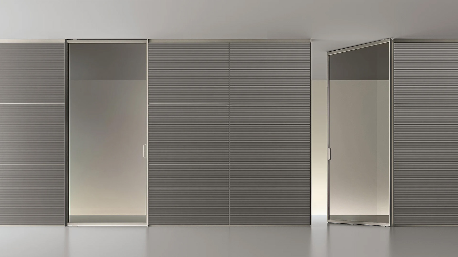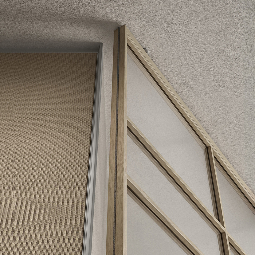 Конструкция может устанавливаться без наличника или интегрироваться в систему стеновых панелей Modulor.