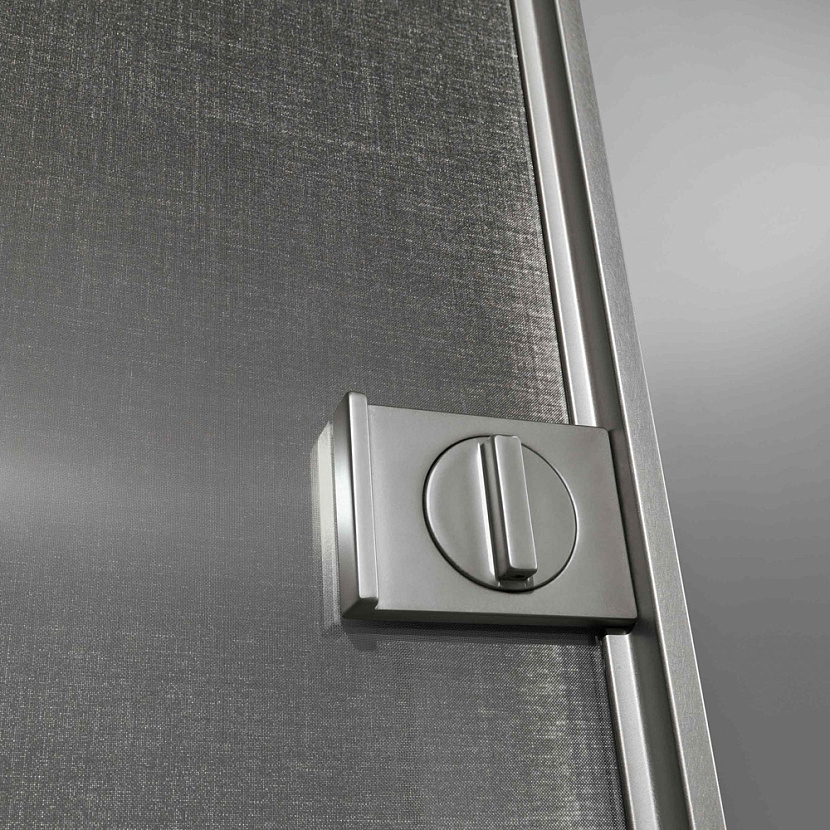 Система оснащается скрытыми реверсивными петлями, позволяющими изменять направление открывания, а также запатентованным магнитным замком Rimadesio, обеспечивающим бесшумное и плавное закрывание двери. Благодаря регулируемому алюминиевому коробу система легко адаптируется к различной толщине стен и может использоваться как в жилых, так и в общественных пространствах.