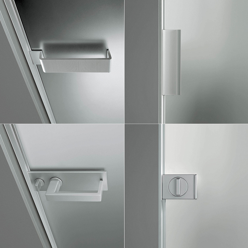 Система оснащена поворотным механизмом, позволяющим двери открываться в обе стороны. Дверь доступна в двух версиях: с запатентованным магнитным профилем закрывания или с магнитным замком. Такое решение обеспечивает лёгкое, бесшумное движение и минимальное количество механических элементов.