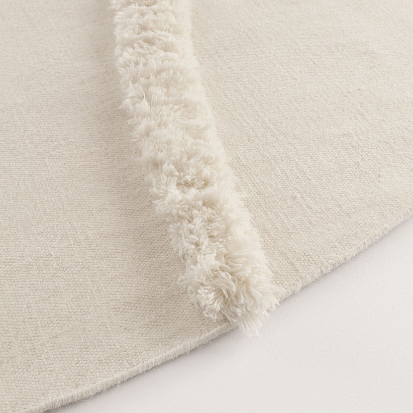 Изделие производится с использованием натуральной шерсти и традиционных ткацких техник ручного производства. Нейтральный оттенок позволяет интегрировать ковер в минималистичные интерьеры и композиции с натуральными материалами.