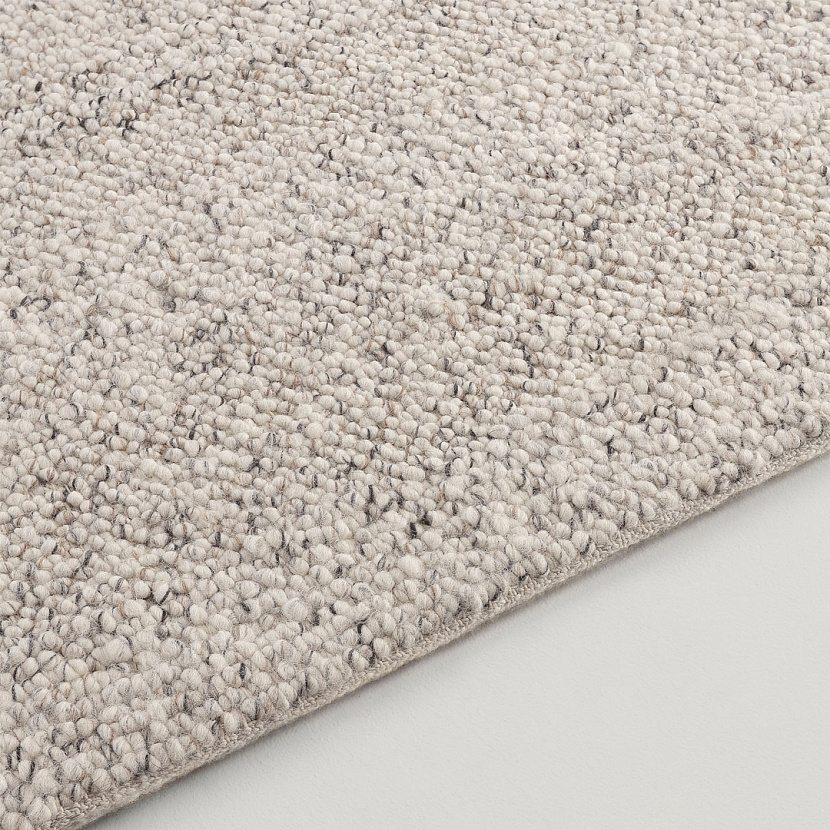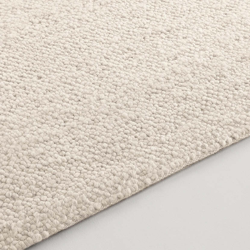 Ковер ручного ткачества из смеси различных нитей. Поверхность формируется с характерным рельефным «curled»-эффектом, создающим мягкую текстурную структуру материала.