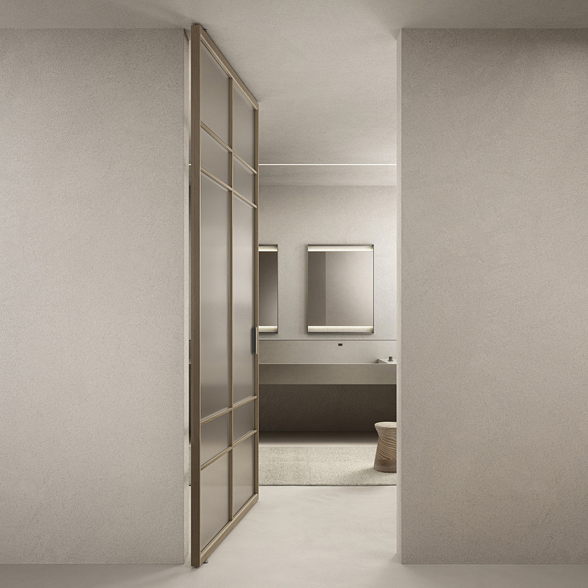 Rialto Specchi интегрируется в интерьеры жилых и общественных пространств, где требуется архитектурное зеркало с минималистичной рамой и возможностью напольной или настенной установки.