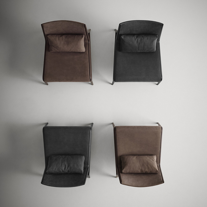 Встроенная система эластичных ремней в основании сиденья и поясничная подушка усиливают эргономику кресла. Комбинация дерева, ткани или кожи позволяет интегрировать модель в различные архитектурные сценарии интерьера.