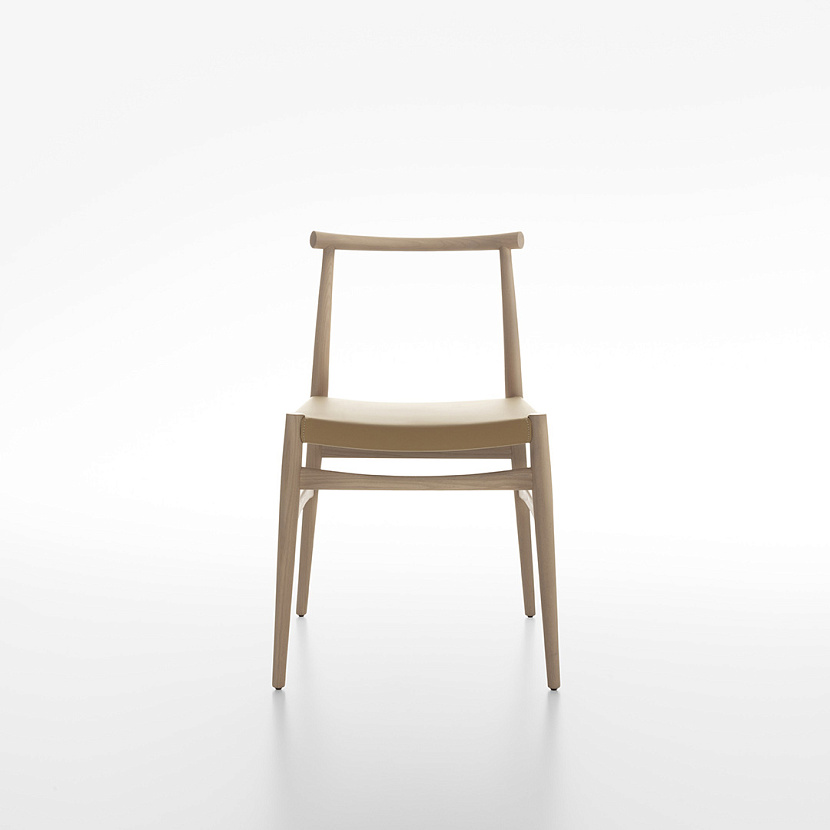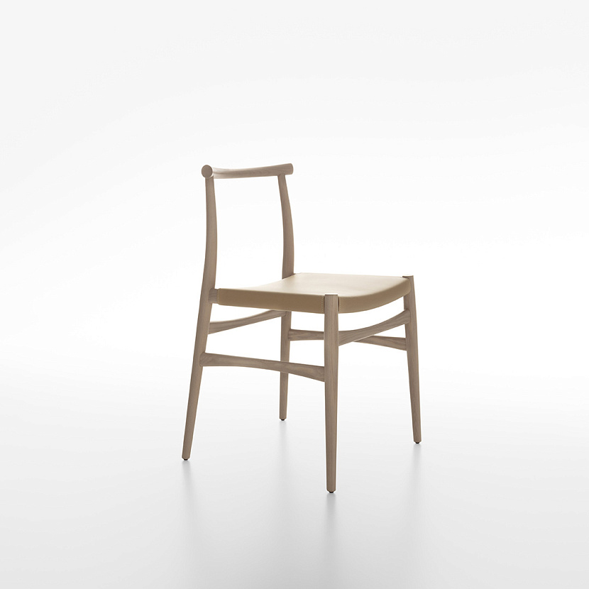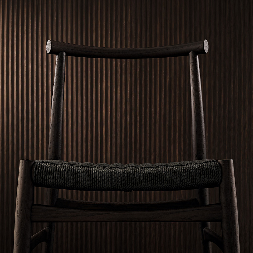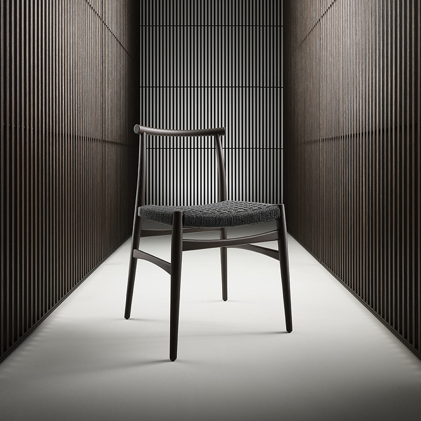 Wabi интегрируется в интерьеры столовых зон и кухонь, где требуется стул с лёгкой деревянной конструкцией и выразительной графикой посадки.