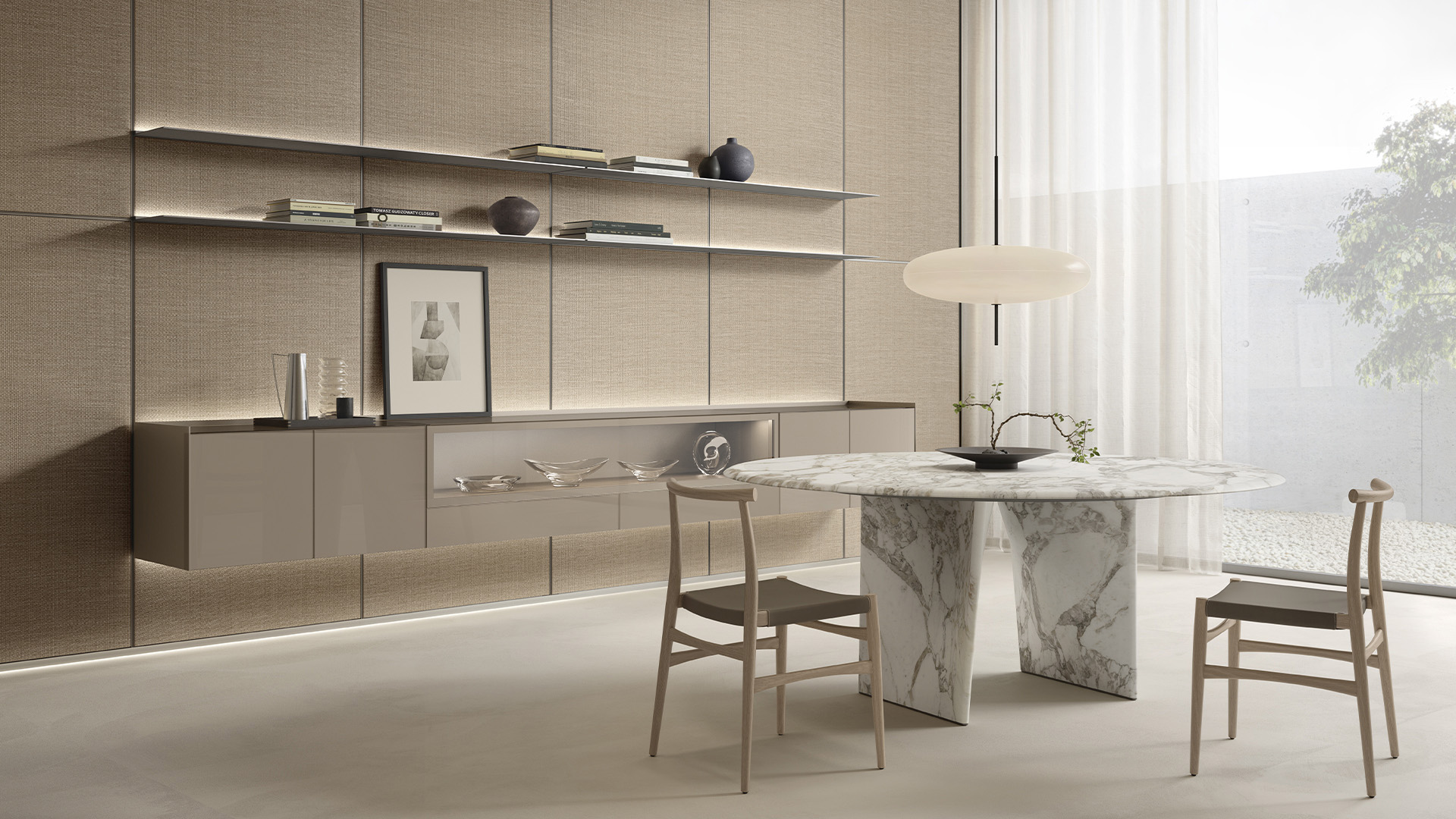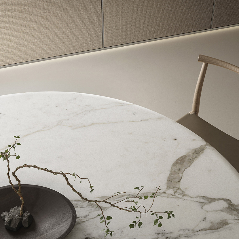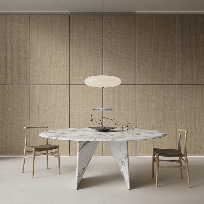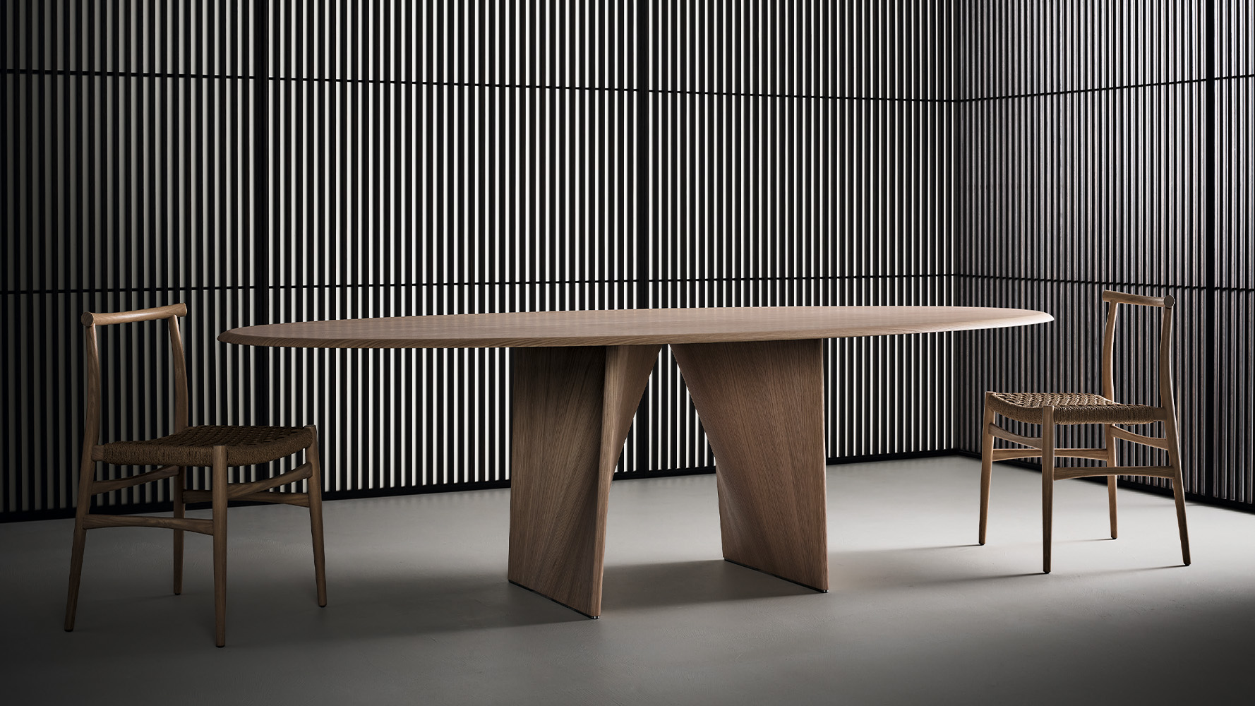 Wabi интегрируется в интерьеры столовых зон и кухонь, где требуется стул с лёгкой деревянной конструкцией и выразительной графикой посадки.