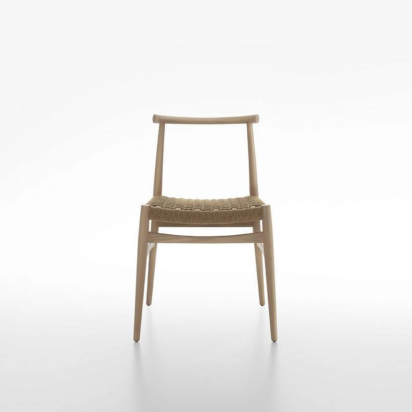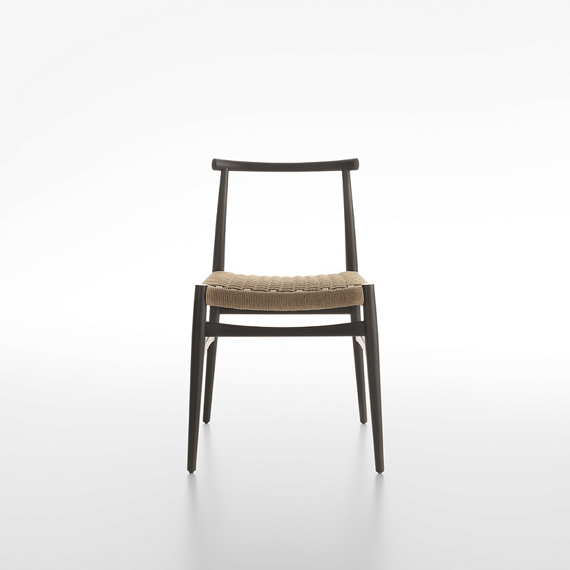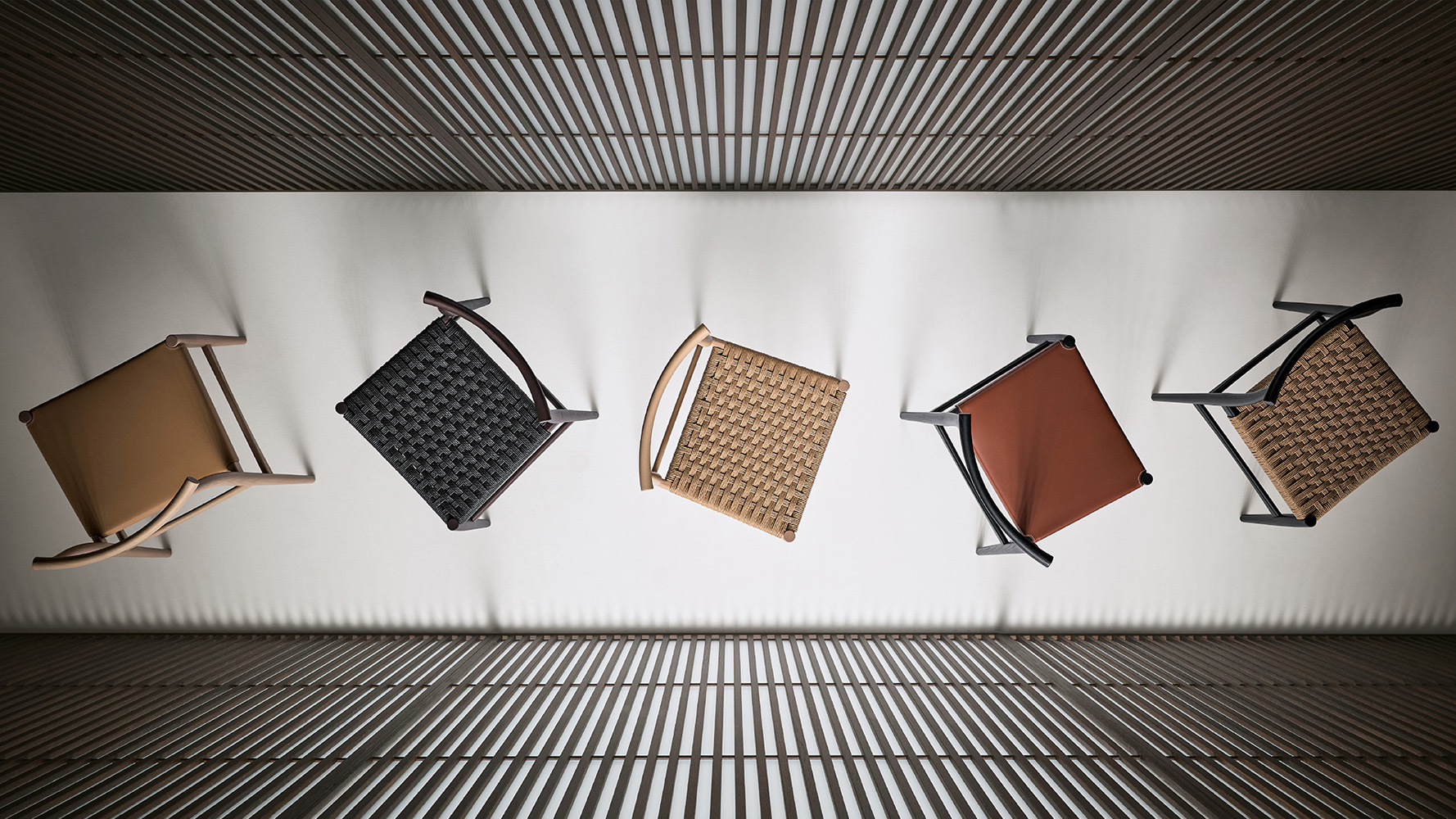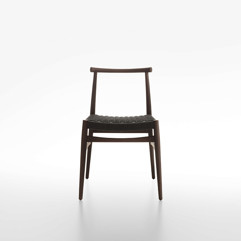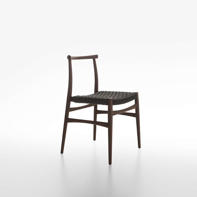 Сиденье выполняется в двух вариантах — из плетёного корда или кожи. Внутренняя поддерживающая структура обеспечивает комфорт при визуально лёгкой конструкции, позволяя использовать стул в жилых и общественных интерьерах.