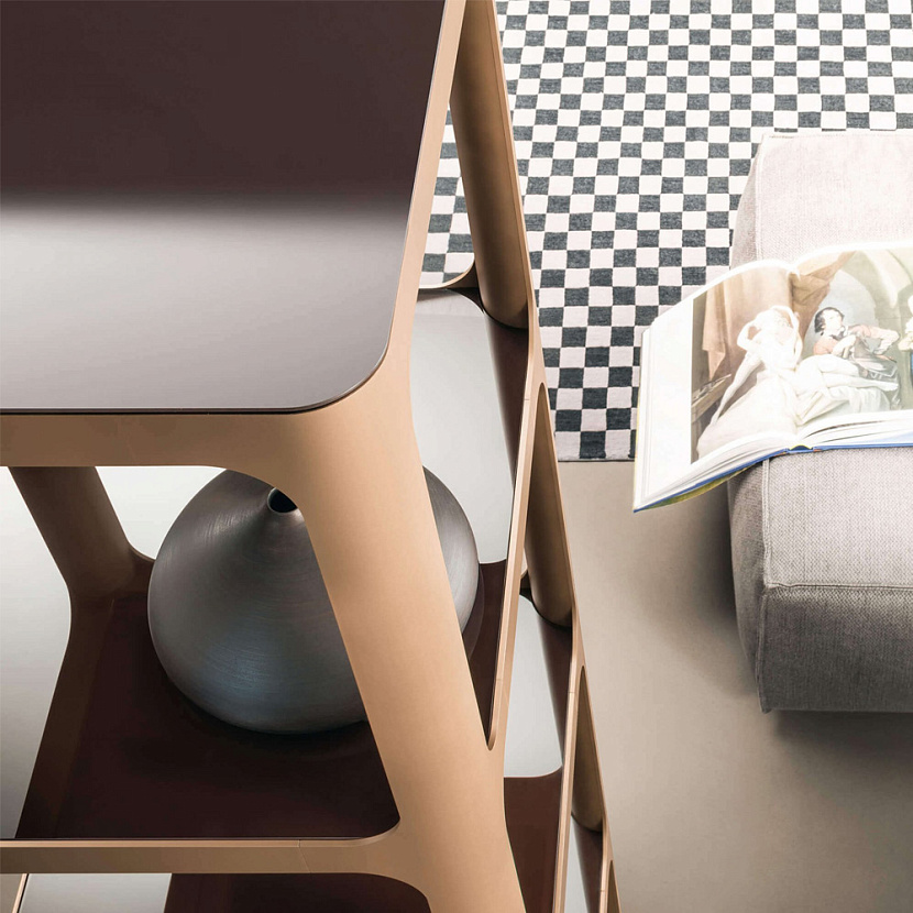 Sixty интегрируется в интерьеры гостиной зоны, где требуется лёгкий архитектурный стеллаж с минималистичной геометрией и графической выразительностью конструкции.