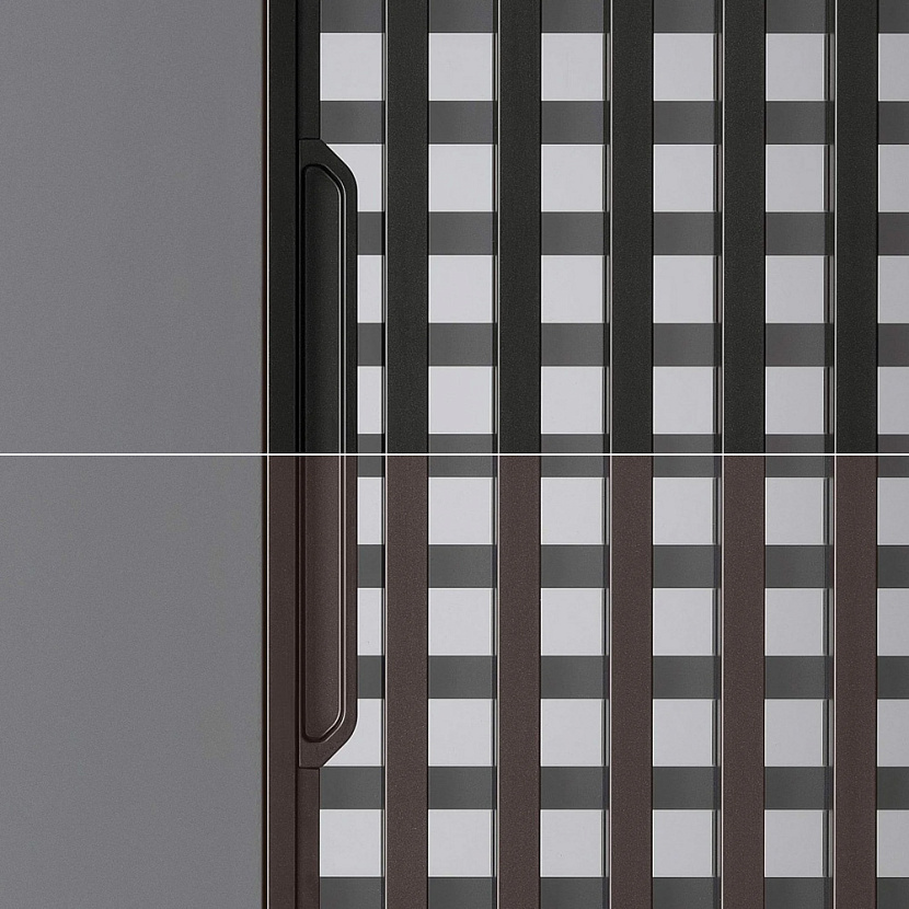 Система вдохновлена традиционными японскими перегородками и переосмысляет их графическую и архитектурную выразительность в современном материале. Конструкция основана на сочетании вертикальных алюминиевых профилей и панели из многослойного стекла с горизонтальным декоративным рисунком.
