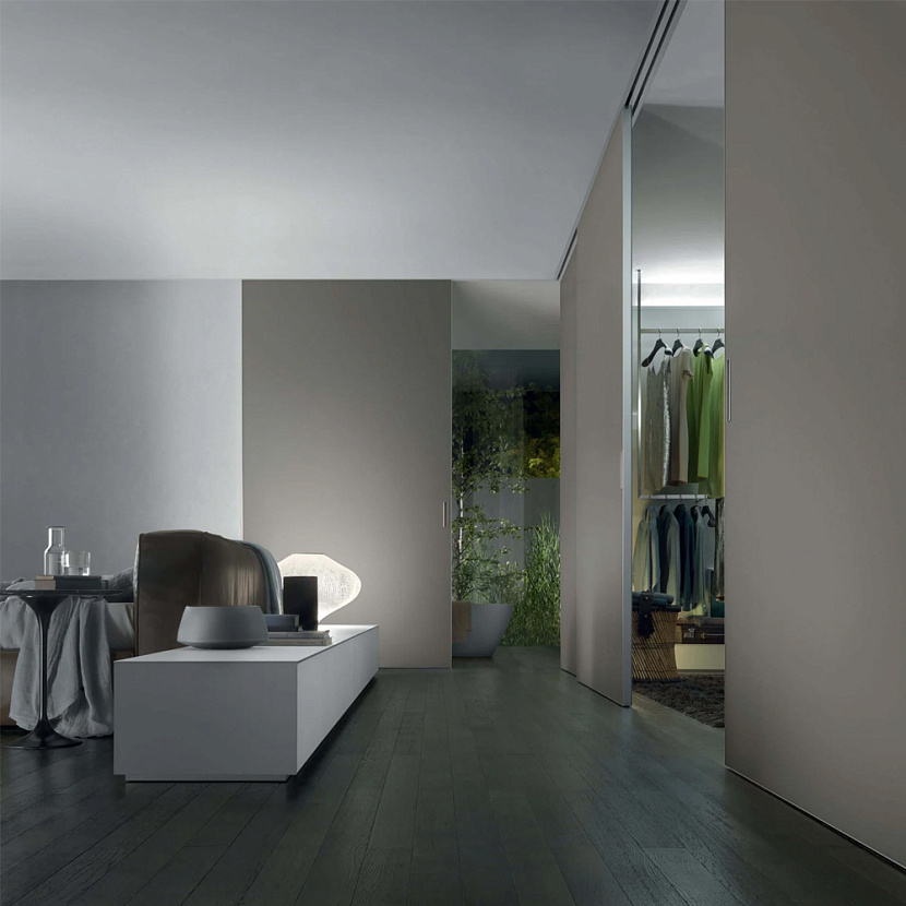 Graphis Light интегрируется в интерьеры, где требуется лаконичное закрытие ниш и гардеробных пространств при сохранении визуальной лёгкости конструкции.