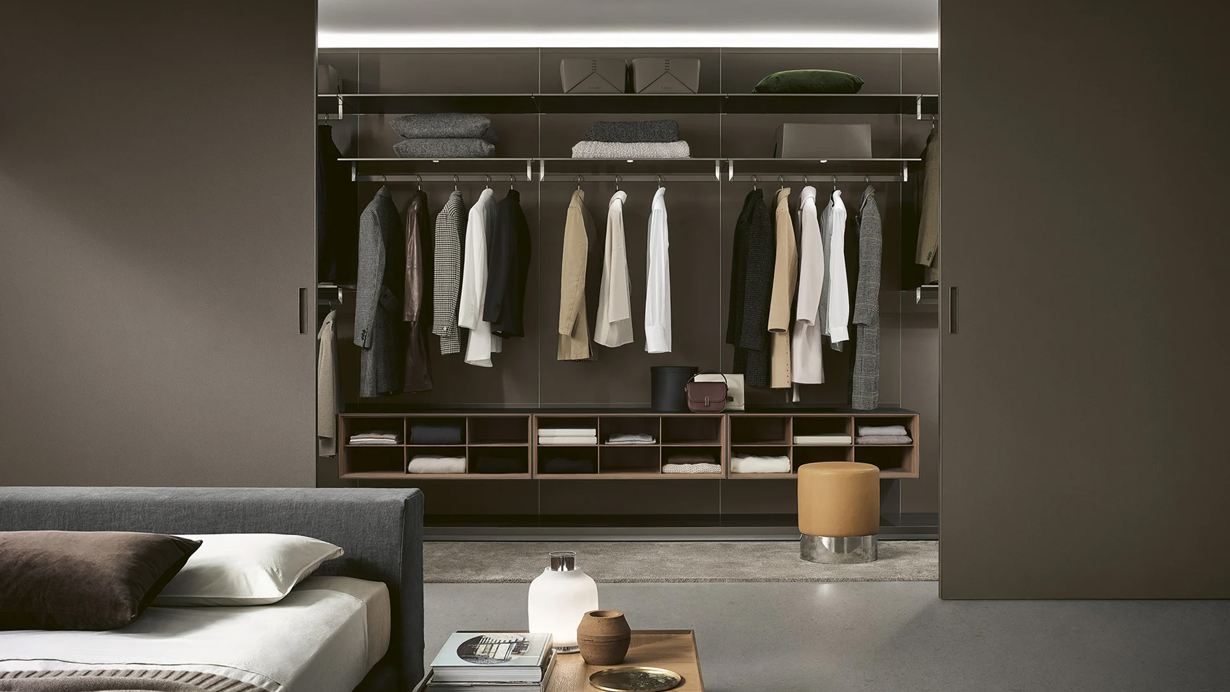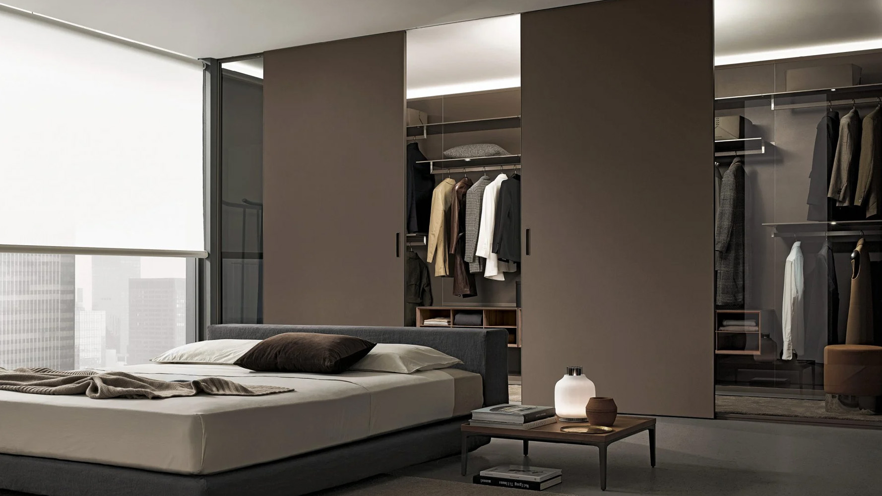 Раздвижные панели с алюминиевыми профилями минимальной толщины и панелями из стекла, керамики или синтетической кожи.