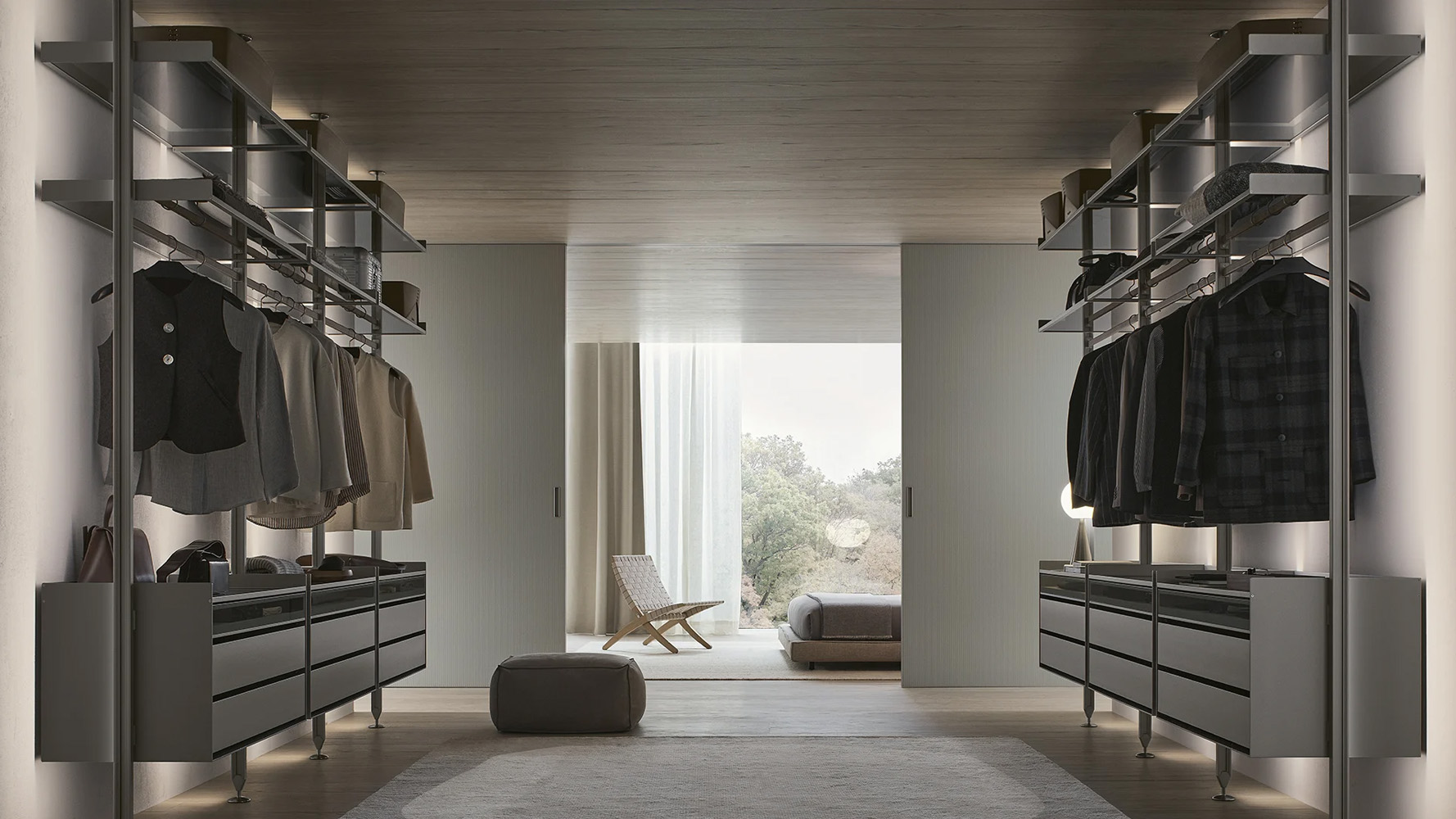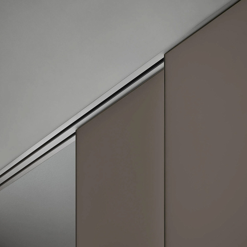 Система раздвижных панелей отличается предельно лаконичной конструкцией: панель из стекла, керамики или синтетической кожи заключена в алюминиевый профиль минимальной толщины. Такая структура подчёркивает цельную поверхность панели и позволяет материалу стать главным выразительным элементом интерьера.