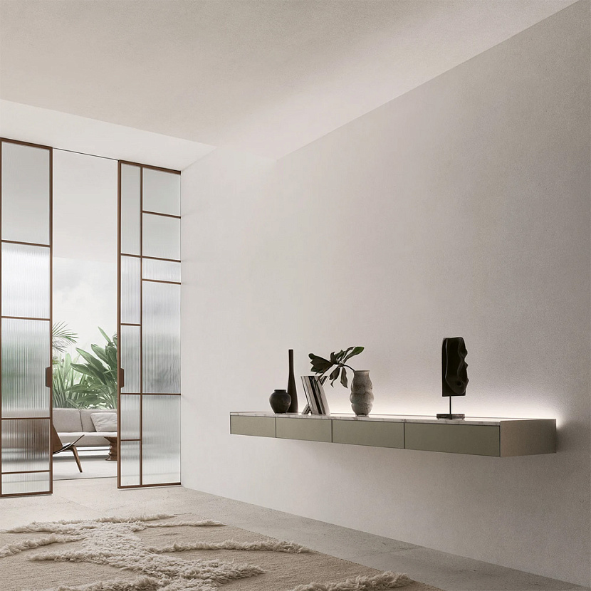 Maxi интегрируется в интерьеры, где требуется разделение крупных пространств при сохранении световой проницаемости и архитектурной целостности.