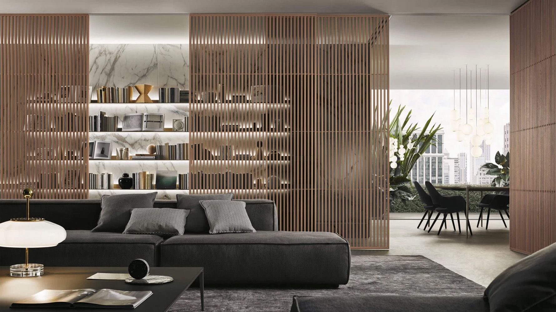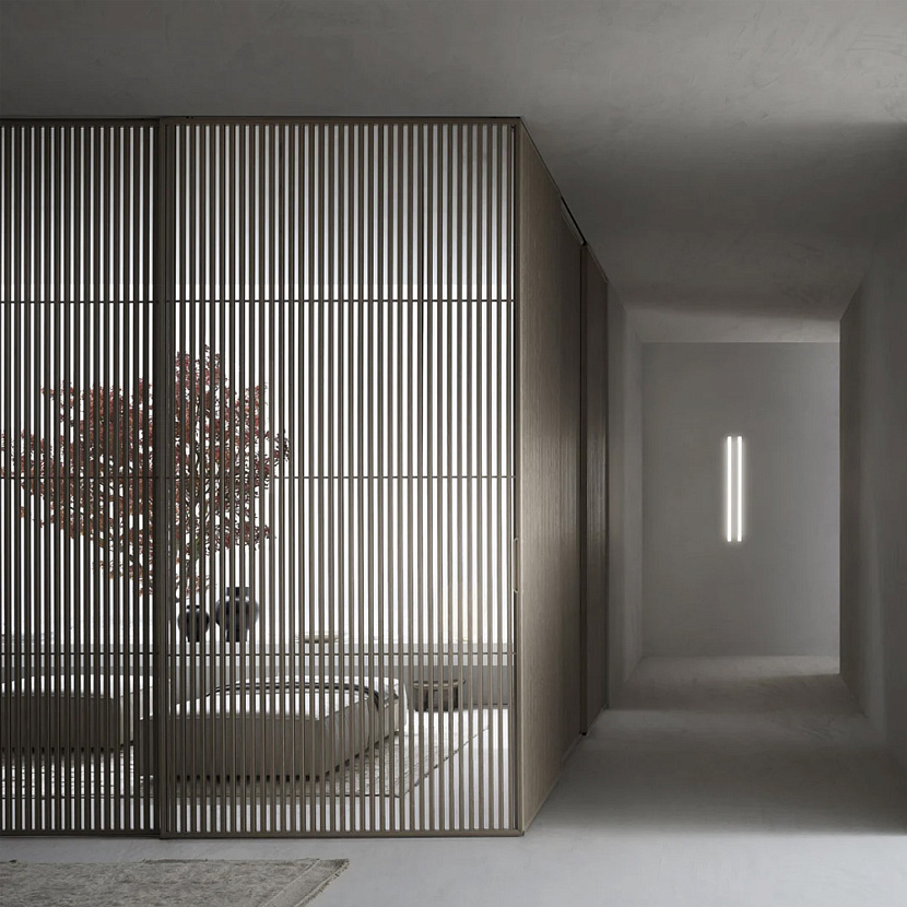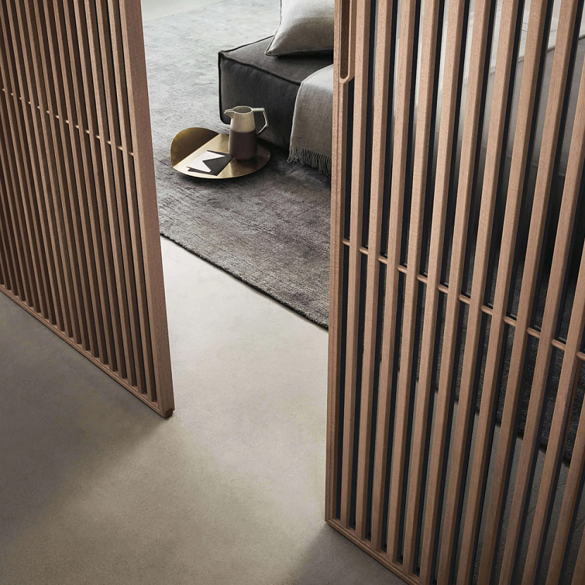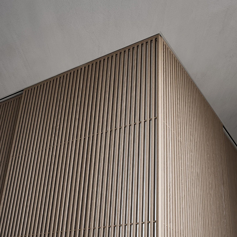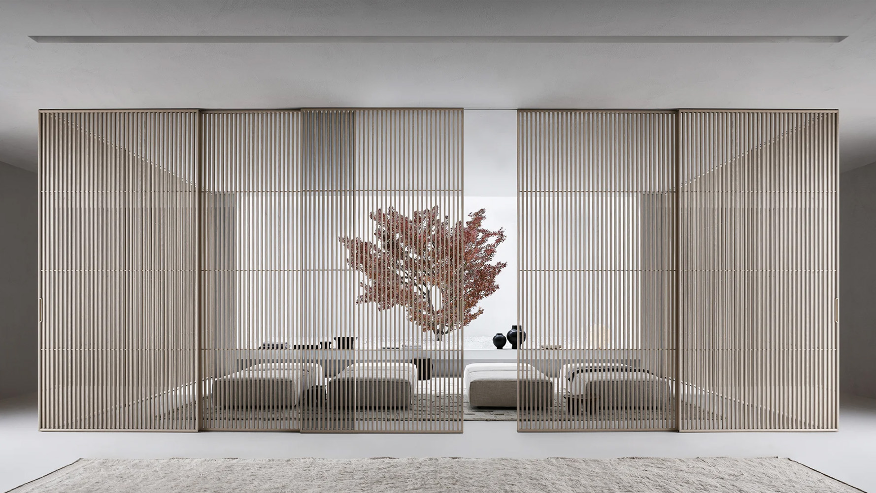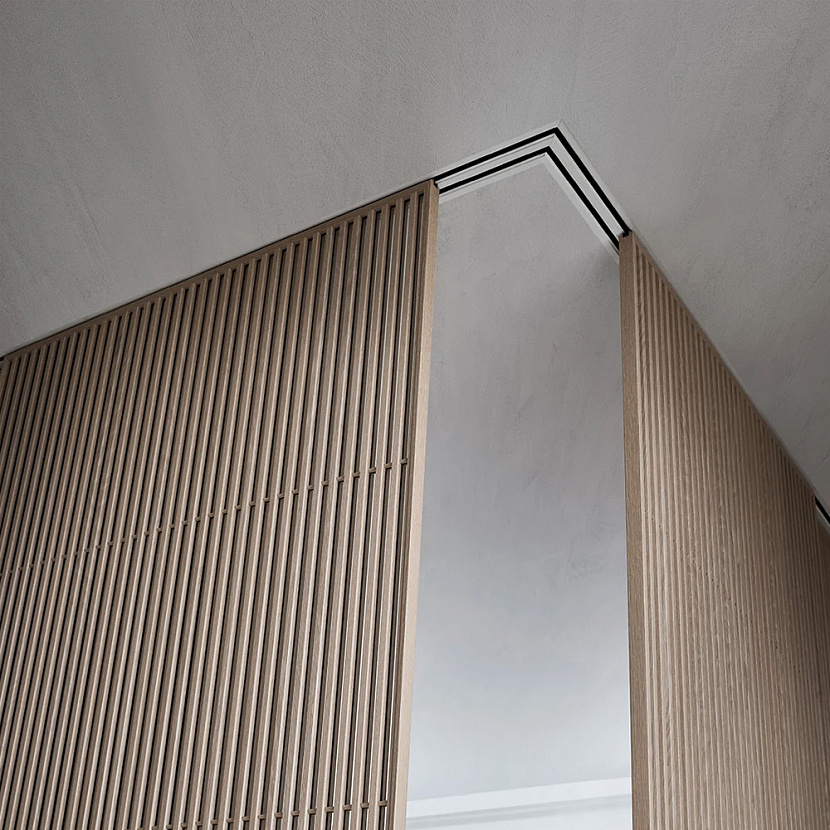 Система раздвижных панелей сочетает высокие технические характеристики с выразительной графикой конструкции. Панель построена на алюминиевых профилях со стеклянной панелью, формирующих чёткую вертикальную структуру и визуальную лёгкость. Такое решение позволяет использовать Sail не только как функциональный элемент зонирования, но и как полноценный архитектурный акцент в интерьере.