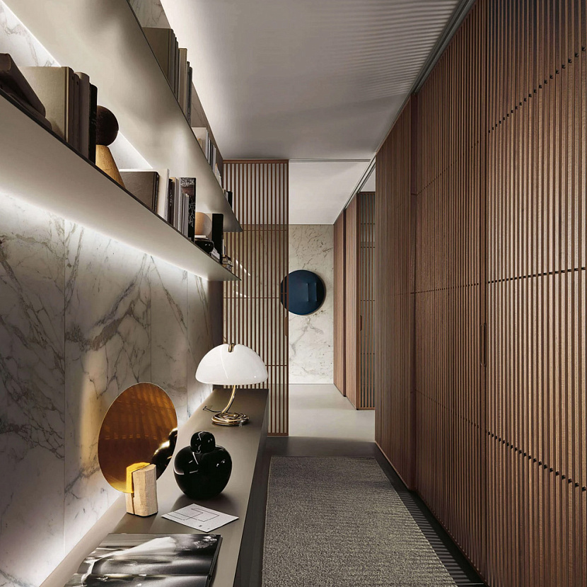 Совместима с потолочными, настенными и встроенными направляющими Rimadesio.