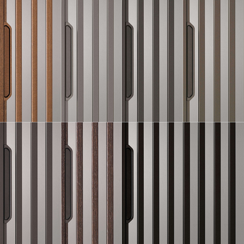 Широкий выбор вариантов стекла и отделок алюминиевых профилей, включая версии с облицовкой шпоном ореха или термообработанного дуба, позволяет адаптировать систему под различные архитектурные задачи и стилистические решения.