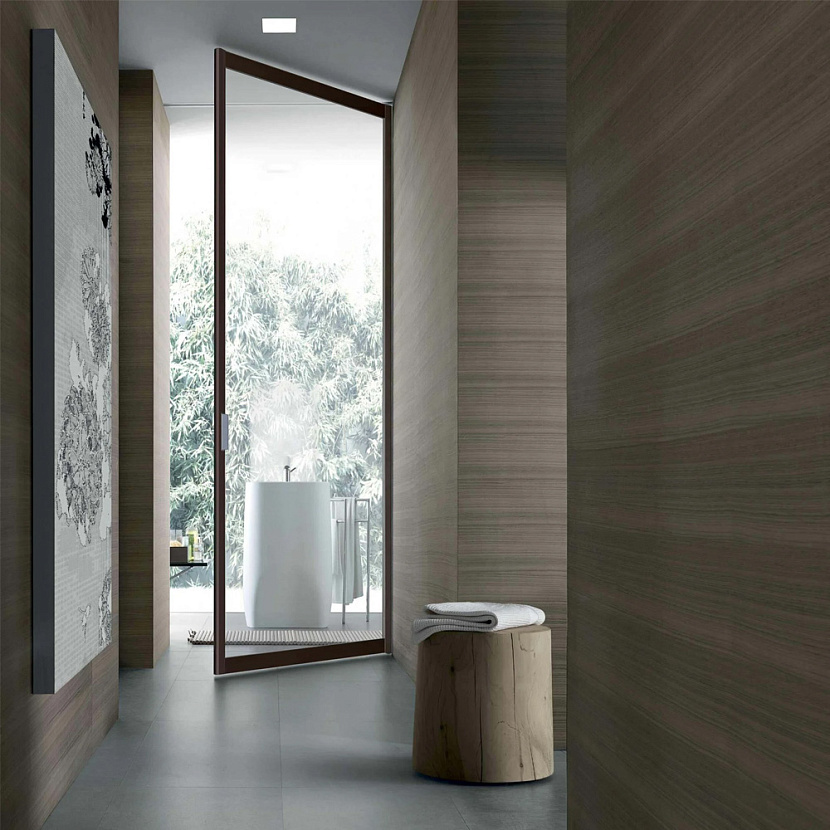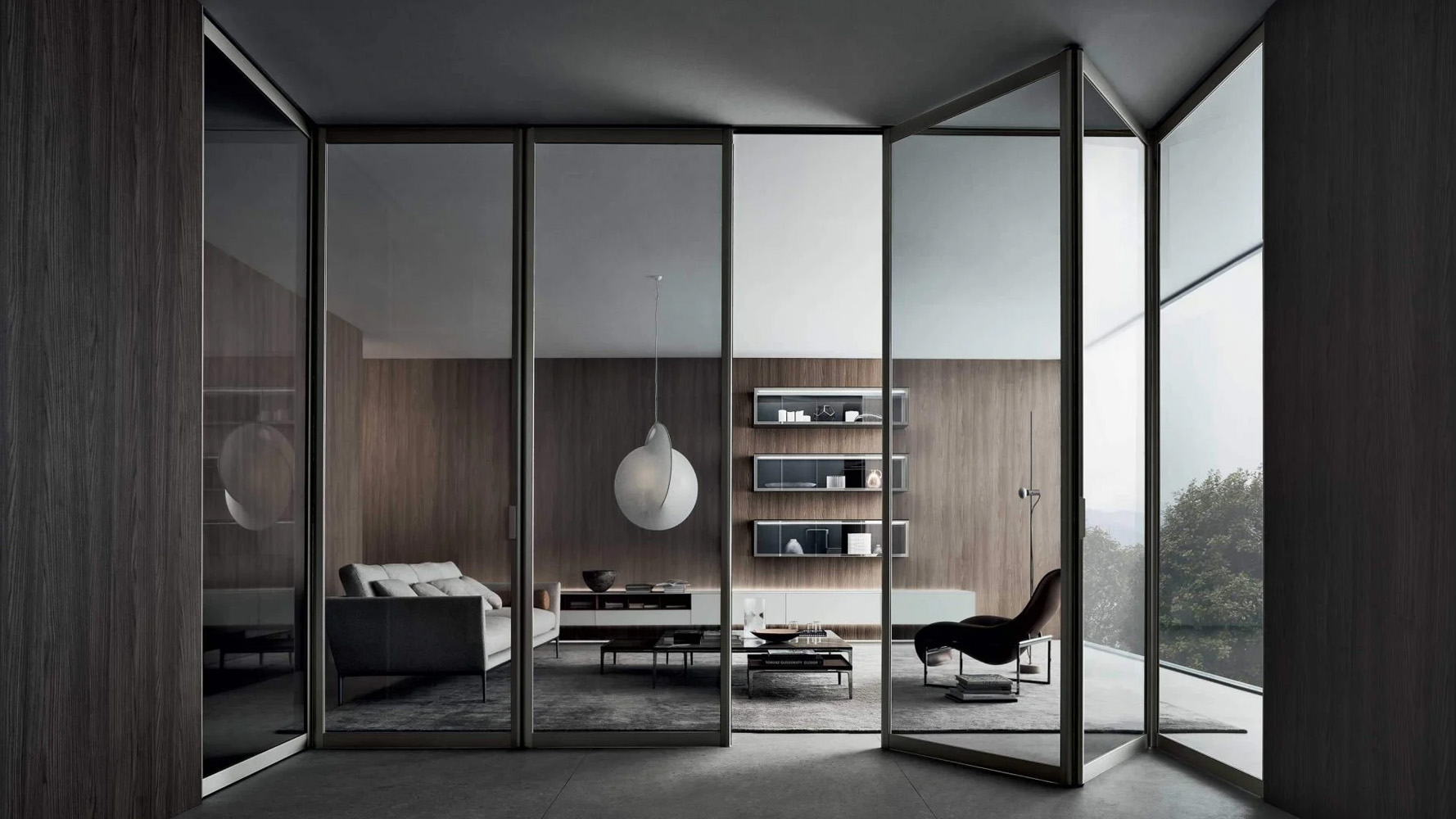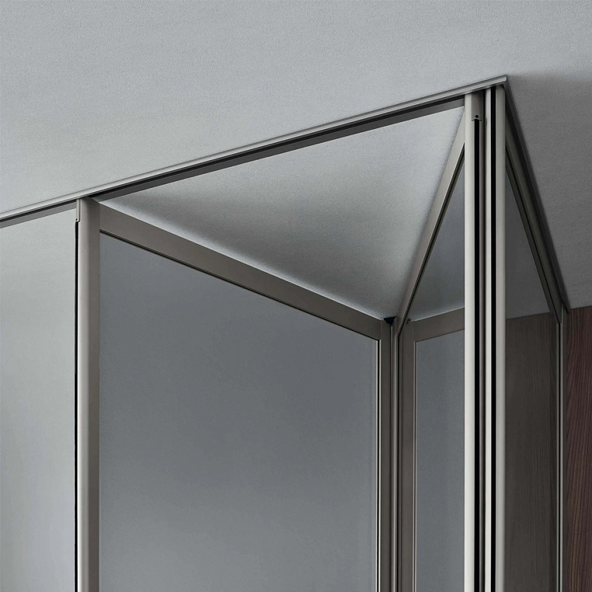 Это одна из первых систем раздвижных панелей Rimadesio, со временем ставшая классикой коллекции. Конструкция основана на алюминиевых профилях со стеклянными панелями и поддерживается фирменной системой направляющих, позволяющей устанавливать панели в потолочные, настенные или встроенные решения. Система постоянно совершенствуется технически и эстетически, сохраняя при этом исходную архитектурную идею.