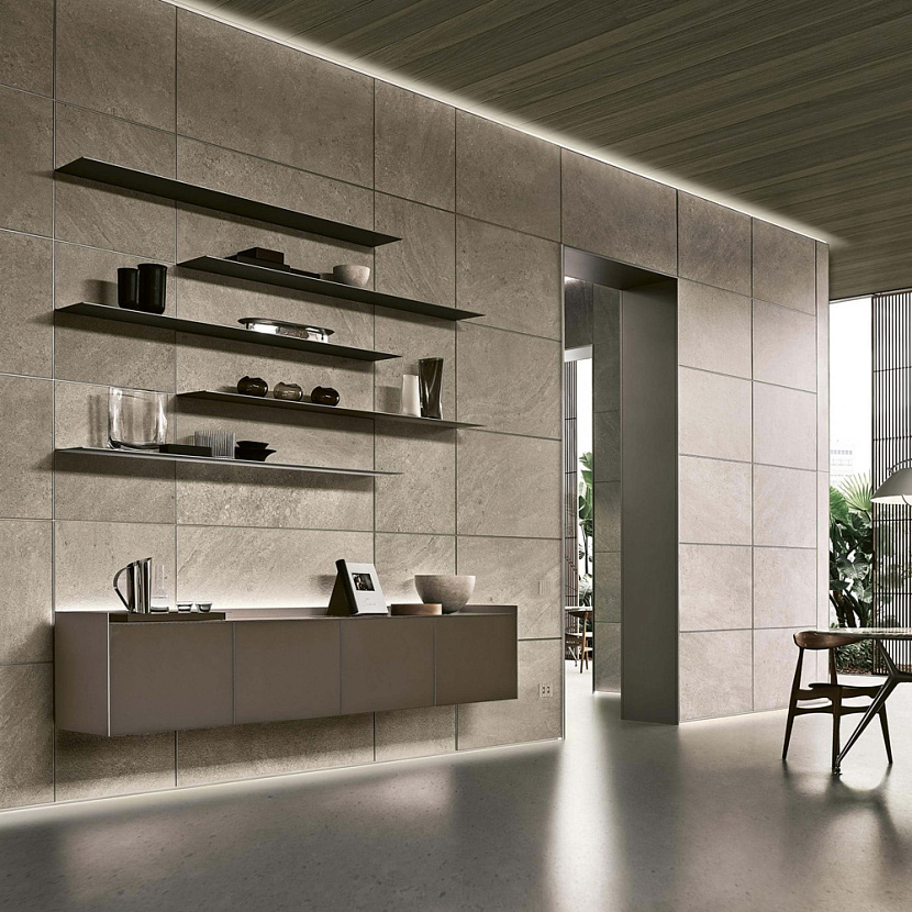 Встроенная светодиодная подсветка в горизонтальных профилях и полках системы.
