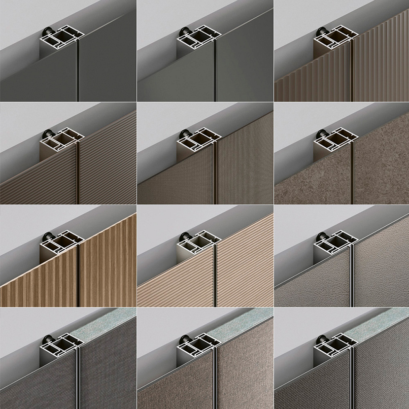 Алюминий, стекло, дерево, Litech, ткань, натуральная кожа, экокожа.