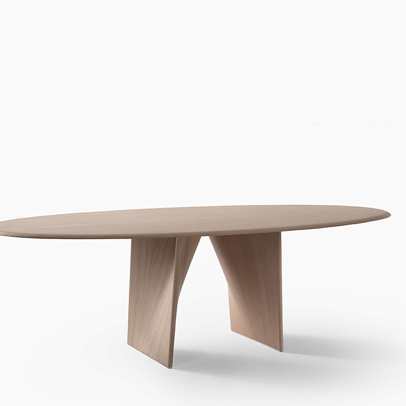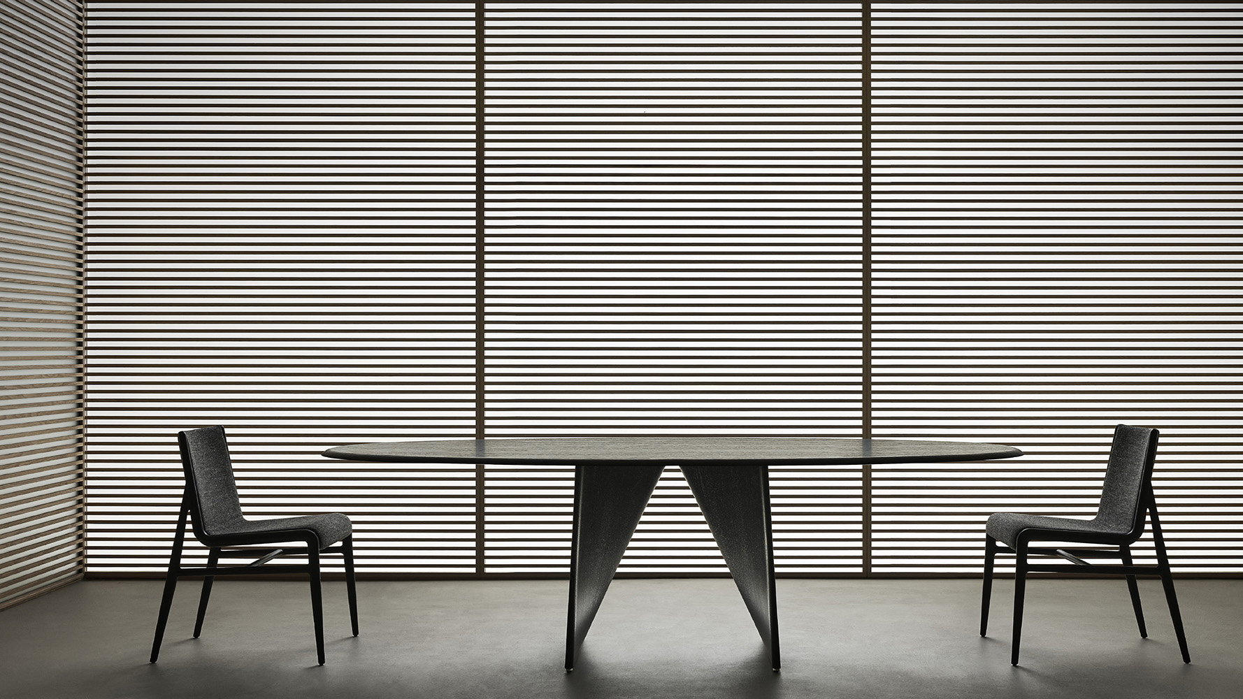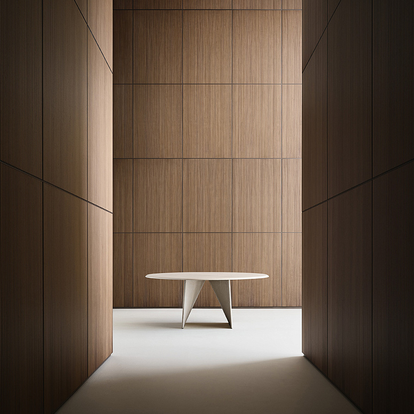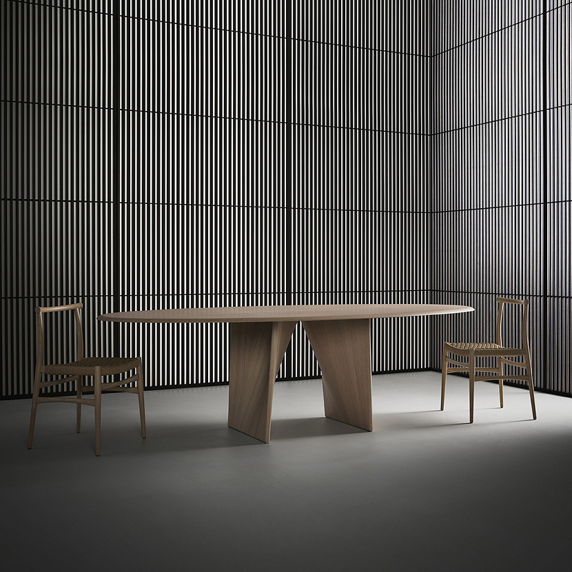 Lambda интегрируется в интерьеры столовых зон, кухонь и переговорных пространств, где требуется выразительный обеденный стол со скульптурной архитектурой основания.