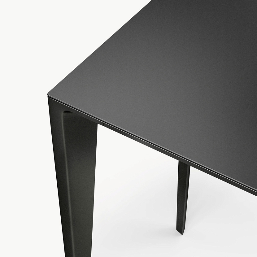 Консоль с алюминиевым каркасом и столешницей, интегрированной в структуру основания.