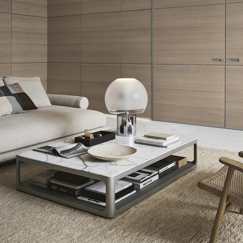 Sixty Coffee Table интегрируется в интерьеры гостиных и лаунж-пространств, где требуется журнальный стол с модульной архитектурой и возможностью вертикального наращивания композиции.