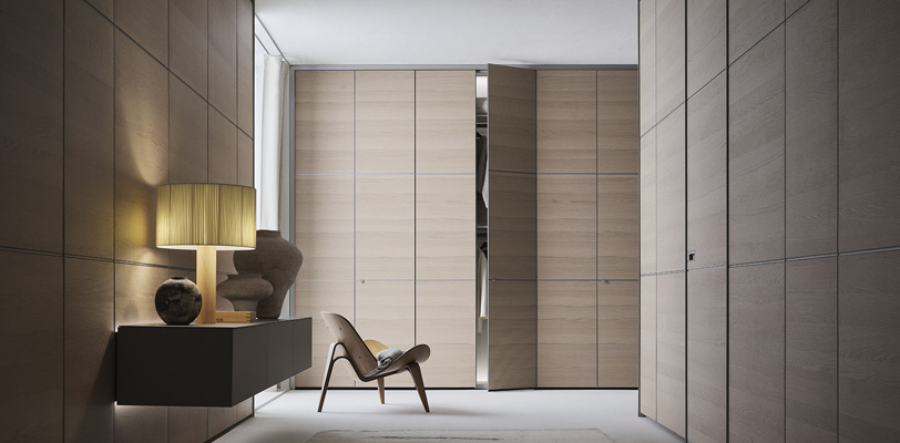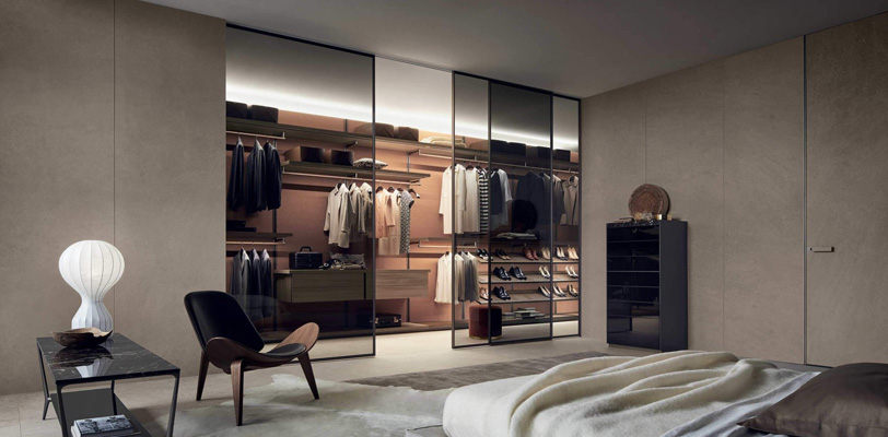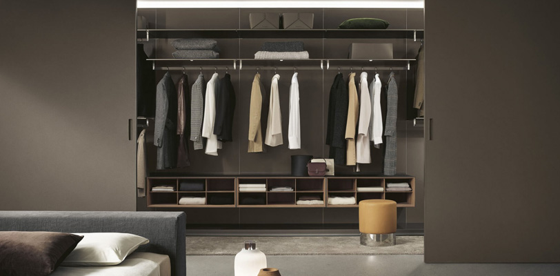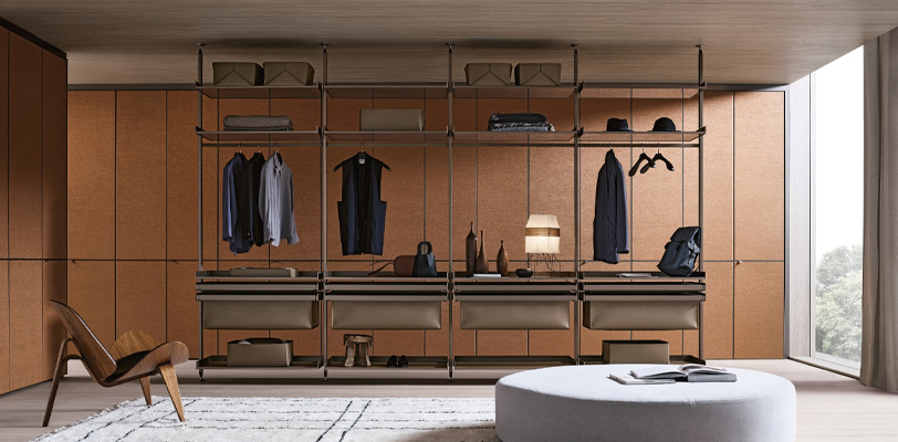 Гардеробные системы Rimadesio применяются для организации хранения, встроенного в общую структуру пространства.